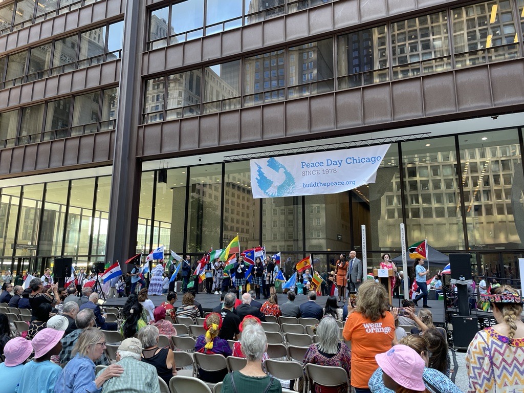 Speeches naturally echoed the UN’s 2022 International Day of Peace theme of “End racism. Build peace.” Although we had some fun, hectic moments moving 200+ people on and off the stage in Daley Plaza, the amazing Peace School coordination of buses, trainings, labeling of flags and attention to each detail made the celebration appear flawless!